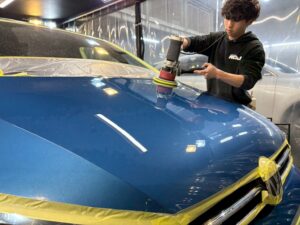 細かな洗車キズやくすみの影響で、塗装本来の美しさが隠れてしまっている状態でした。