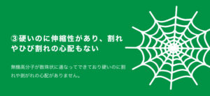 ③硬いのに伸縮性があり、割れやひび割れの心配もない